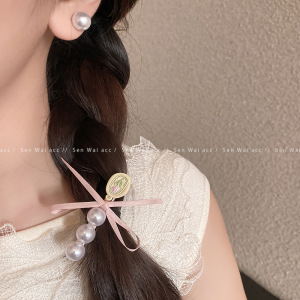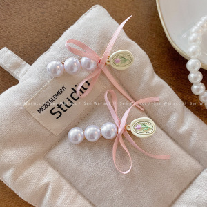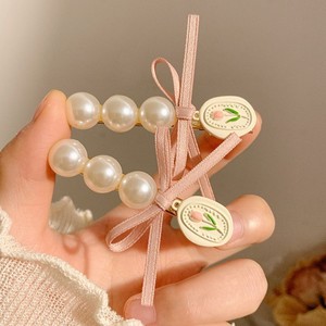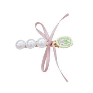 チューリップリボンパールサイドヘアピン女性のスーパーフェアリーフラワーヘアピンサイドクリップ甘いヘアアクセサリー