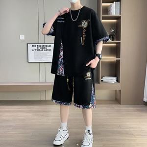 新しい中国風の半袖Tシャツメンズ夏七分袖カジュアルスポーツスーツ男の子着用ショートパンツセット