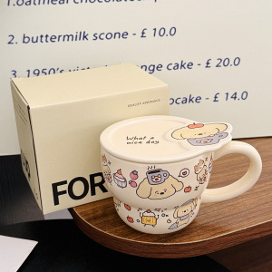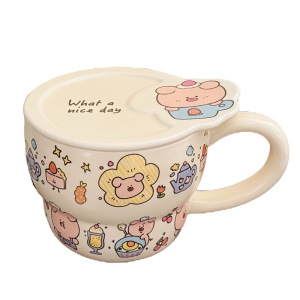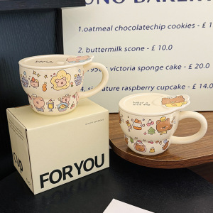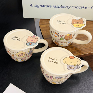 蓋付きのかわいい漫画セラミックマグ、パーソナライズされた落書きステッカー、ゴブレット、クリエイティブな家庭用ミルクカップ、お土産