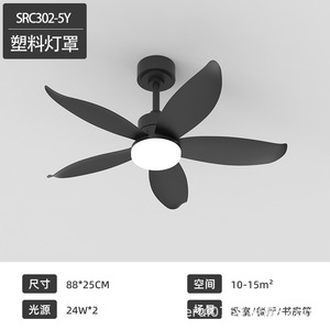 [25inch 天井モデル]-黒いプラスチックランプシェード-5 枚の葉