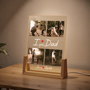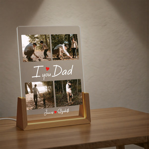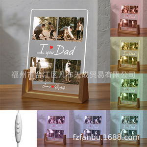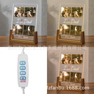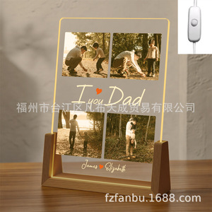 国境を越えた売れ筋カスタマイズされたアクリル親子写真ナイトライト木製ベース彫刻テーブルランプ装飾品メーカー卸売
