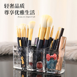化妆刷收纳筒多格亚克力笔筒收纳盒学生桌面透明简约风格纯色笔筒