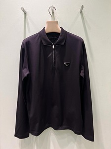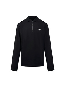 プダラ 正規バージョン ポロファーソリッド 長袖 ピュアブラック トライアングルロゴ 高級ハイバージョン 高品質 カウンターモデル