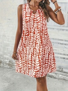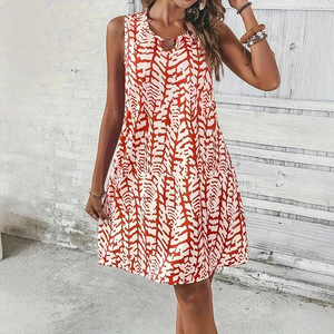 2025 ヨーロッパとアメリカのクロスボーダー新しいプリントリングノースリーブスカート休暇カジュアル多用途ファッションドレス婦人服