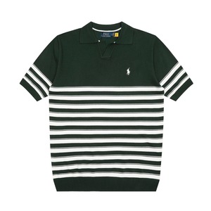 2025年新作 ラルフローレン ストライプ ポニー刺繍 アイスシルク 小さめVネックニットPOLO 半袖