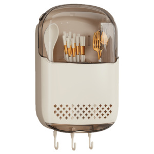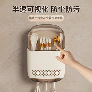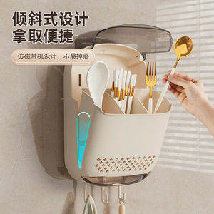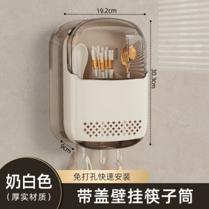 新しい箸防塵収納ボックス壁掛け家庭用箸バレルキッチンクイックスプーン収納ラック排水箸バスケット