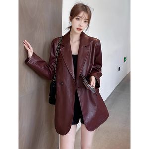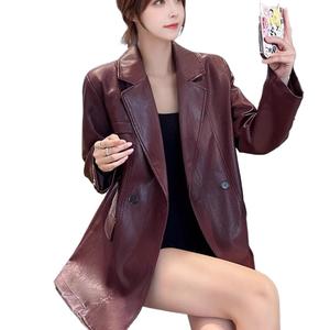 2025秋季新款安可拉红复古高级感皮衣外套女宽松休闲显瘦皮西装潮