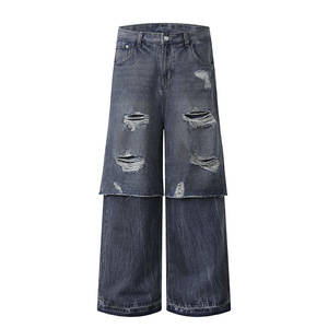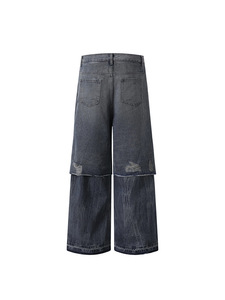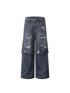 ATBORDER 2025秋季新款复古高街破洞假两件直筒牛仔裤水洗休闲长
