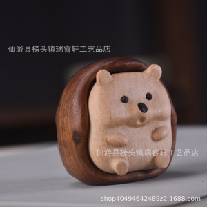 ブナ材の木彫り小さなハリネズミ癒しのドーパミン装飾品無垢材スプライシングクリエイティブ文具ハンドピース無垢材ポータブル