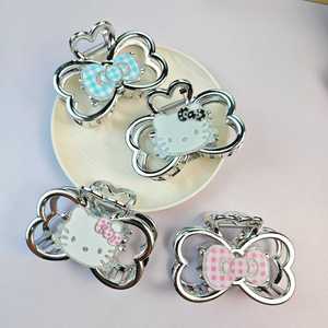 AB面キラキラキティ猫リボンクリップ女性用、キュートでスイートなヘアシャーククリップヘアクリップ、おしゃれなヘアアクセサリー