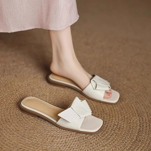 大量入荷〜女性用シープスキンの美しいリボンフラットスリッパ、2025夏、スカート付きサンダル
