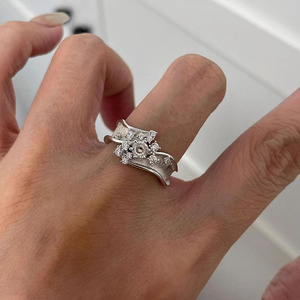 Xiaohongshuの人気のブラッシュフラワーダイヤモンドワイドエッジリング女性用ニッチデザイン人差し指リングドロップシッピング