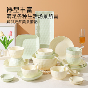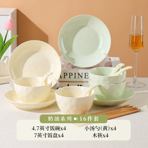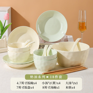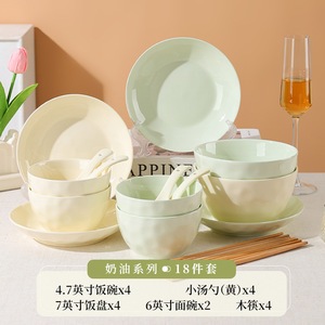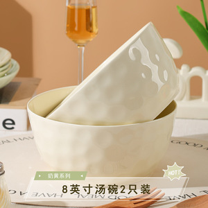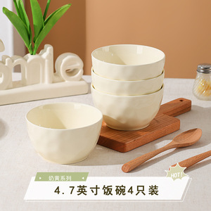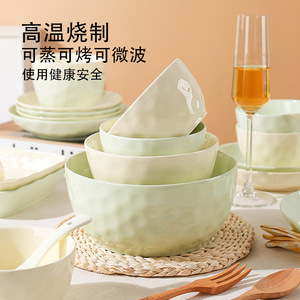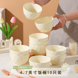 クリームストーン食器セットスープボウルライスボウルシンプルな食器セット高温釉下色セラミックボウル家庭用ヌードルボウル