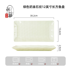 グリーンクリームストーン柄 12inch角魚皿 [1枚] (箱サイズ:30枚/箱)
