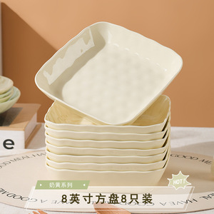 イエロークリームストーン柄 8inch角皿 [8枚入]