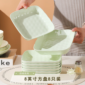 グリーンクリームストーン柄 8inch角皿 [1枚] (箱サイズ:40枚/箱)