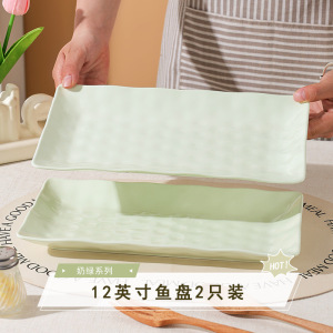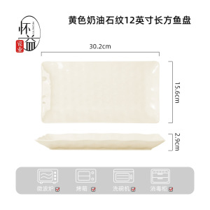 イエロークリームストーン柄 12inch 長方形フィッシュプレート [2枚]