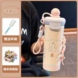 新しいポータブルストローカップ、二層ステンレス鋼断熱カップ、見栄えの良いコーヒーカップ、かわいい漫画のウォーターカップ