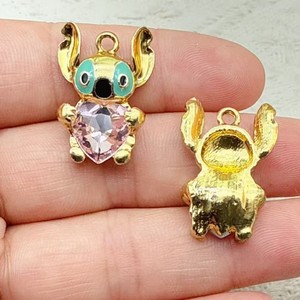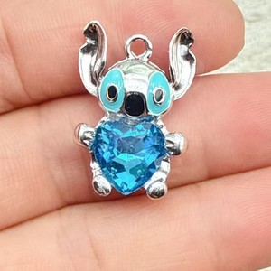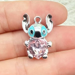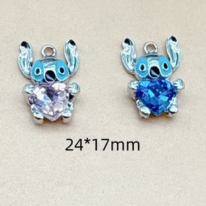 リロとスティッチ愛亜鉛合金ラインストーンペンダントネックレス DIY ペンダント 24*17 ミリメートルシルバー