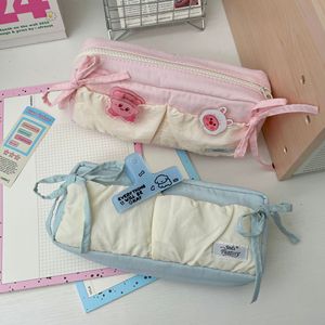 奶油风软乎乎云朵双蝴蝶结笔袋大容量文具袋初中高中女生文具盒