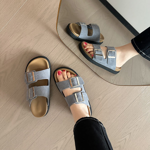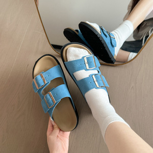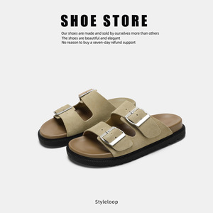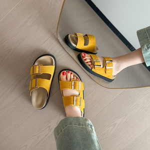 牛革ダブルブレストソフトソール本革ビルケンシュトックスリッパ夏アウター厚底ビーチカジュアルフラットサンダル女性用