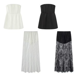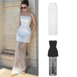 ZA速卖通人気商品、海外向け欧米婦人服卸売、ウエストシェイプのチューブトップベスト、ハイウエストレースロングドレス