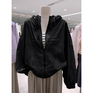 夏季新季宽松双拉链防晒衣女单层薄款连帽冲锋衣轻薄外套女防晒服