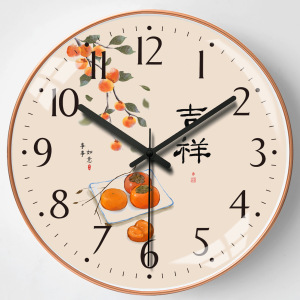 壁掛け時計リビングルーム時計新しいスタイル柿柿如意ホーム壁掛け時計ライト高級北欧クリエイティブ装飾サイレントプレミアム