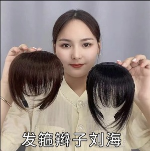新款时尚辫子发箍刘海一体真发前额头帘鬓角遮白发碎齐刘海假发片