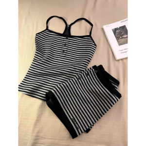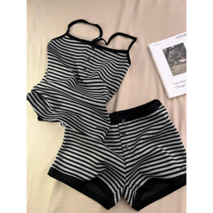 夏に着用できる女性用I字型バックストライプサスペンダーパジャマ、ピュアセクシーホットガールベストスーツ、スリムフィットホーム服