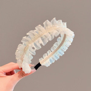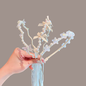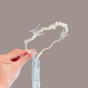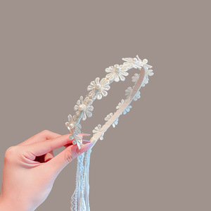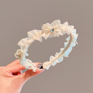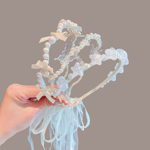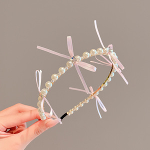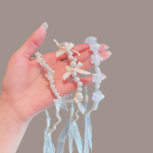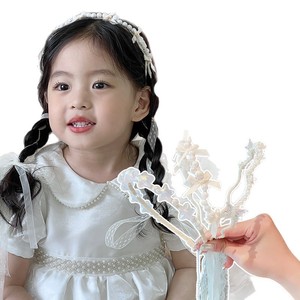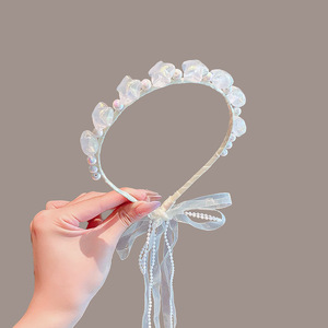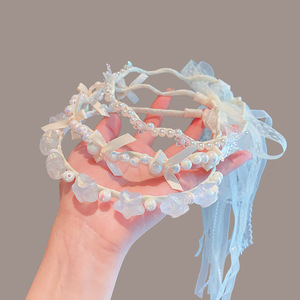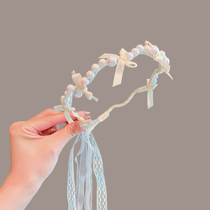 儿童发箍蕾丝珍珠压发发卡法式少女蝴蝶结头箍小女孩超仙飘带发饰