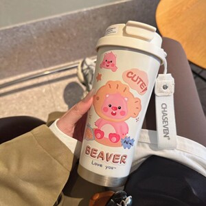 新しいファッション漫画スズランコーヒーカップ 316 ステンレス鋼魔法瓶カップインターネット有名人の車のポータブルストローカップギフト