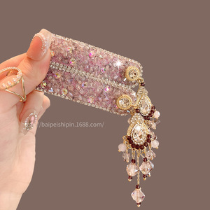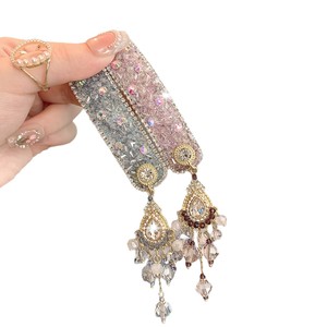 韓国 2025 夏の新韓国東大門夏ハイエンドピンクブルーラインストーンタッセルヘアピン女性のヘアアクセサリー