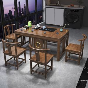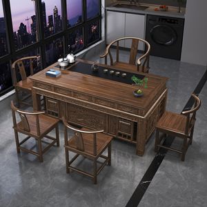 新しい中国風の無垢材のティーテーブルと椅子の組み合わせオフィスホームティーテーブル一体型カンフーティーテーブルコーヒーテーブルセット