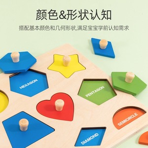 蒙氏益智几何图形手抓板嵌板智力拼图形状配对认知早教儿童玩具