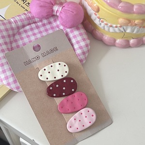 女性用ピンク水玉楕円形ヘアピン、前髪サイドバングクリップ、女の子用ヘアクリップ、スイートヘアピンヘッドドレス