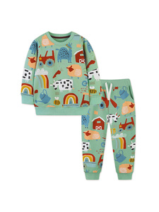 国境を越えた供給 2025 秋の新しい子供スーツヨーロッパとアメリカンスタイルの男の子ラウンドネックプリント長袖スウェットシャツとパンツスーツ