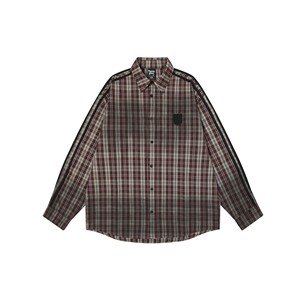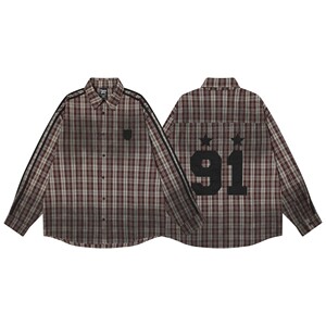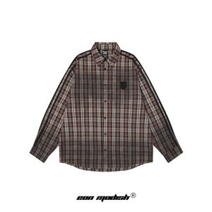 Eon Modish 2025 秋の新作アメリカンストリートファッションダメージ加工パッチスターチェック柄長袖シャツ