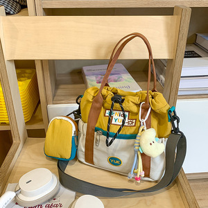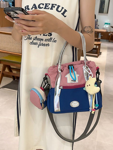かわいいクロスボディバッグ女性のための 2025 新韓国スタイルカラーブロックバケットバッグ女の子のための大容量学生ポータブルショルダーバッグトレンディ