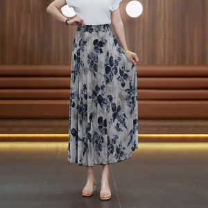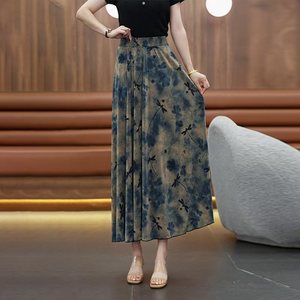 スカートはスリムでハイウエスト、夏の花柄、ファッショナブルで多用途、春夏のプリント、プリーツ、大きな裾、青いトンボの波