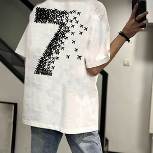 2025 全国トレンドヘビーウェイトピュアコットンプリント半袖メンズ夏ルーズカップル Tシャツカップル着用 Tシャツ