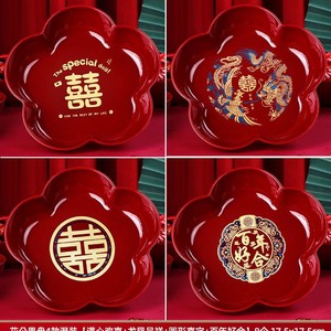 结婚果盘喜糖盘专用客厅红色婚礼用的喜盘子婚庆用品大全2025新款