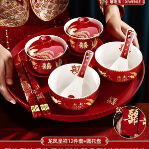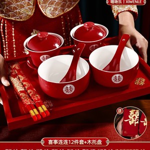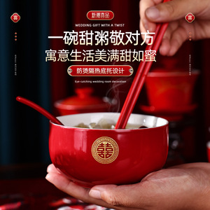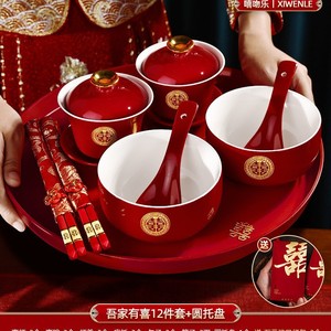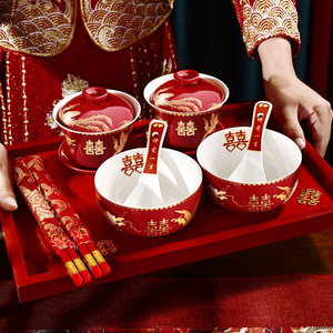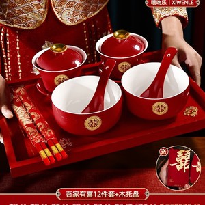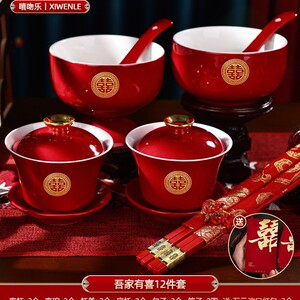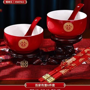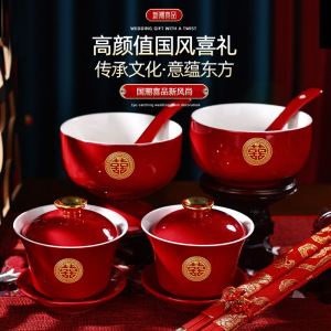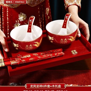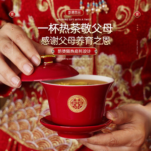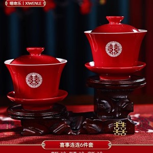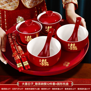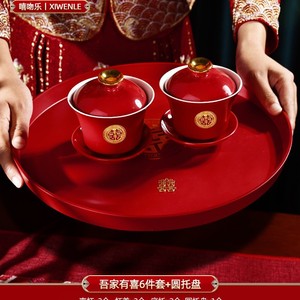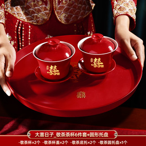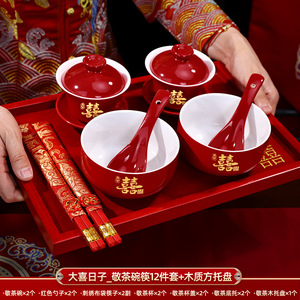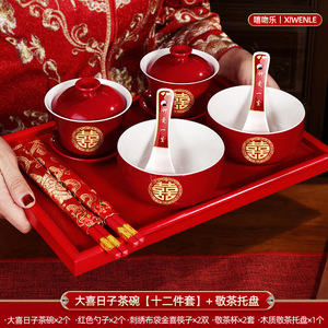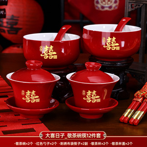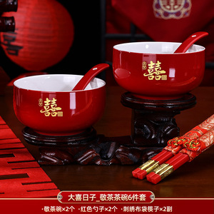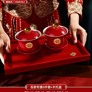 敬茶杯结婚陪嫁用品改口敬酒茶杯套装喜碗婚礼红色碗筷对碗娘家