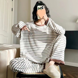 2025胖mm大码睡衣女秋冬季长袖韩版宽松学生少女家居外穿条纹套装