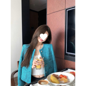 超かわいいショート丈の小香風ドーパミン系エレガントなレディースコート、春秋の新作ツイード織り、白に合わせやすい