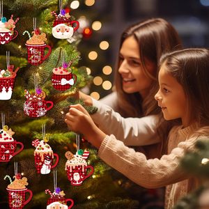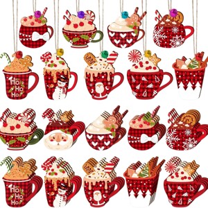 跨境爆款20件木质圣诞节悬挂装饰品热可可吊坠水牛格子咖啡杯切片