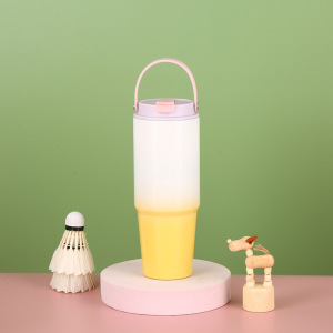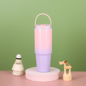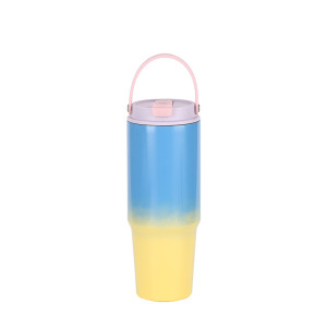 見栄えの良い 304 ステンレス鋼魔法瓶カップ、グラデーションカラー、二層ストロー、ハンドル付き真空アイスカップ、車用 30 オンス