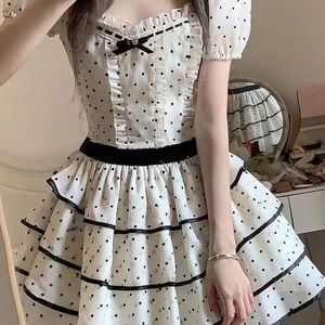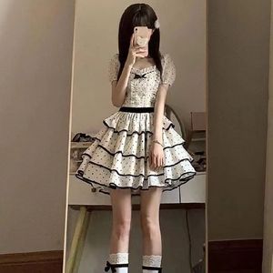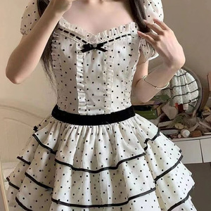 法式学院风温柔少女感波点连衣裙女夏季新款小个子收腰蓬蓬公主裙