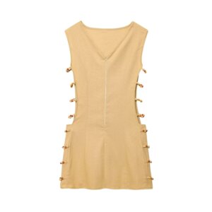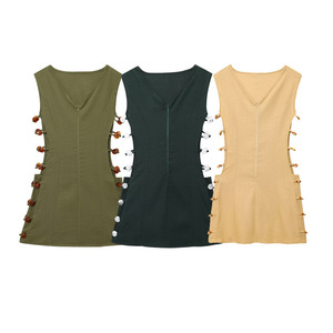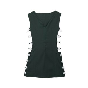 ZR 外国貿易卸売ヨーロッパとアメリカンスタイルの婦人服ファッションデザイン中空ウエストビーズ装飾ノースリーブショートドレス