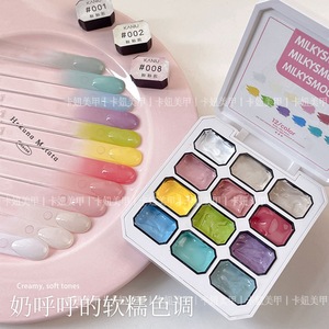 Kanio 12 グリッドミルクパット接着剤新しい繊細で多用途なブラッシュグラデーションスマッジペイントドーパミンマニキュア接着剤